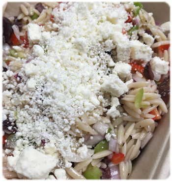 Orzo, Red Bell Pepper, Green Bell Pepper, Kalamata Olive, Red Onion,